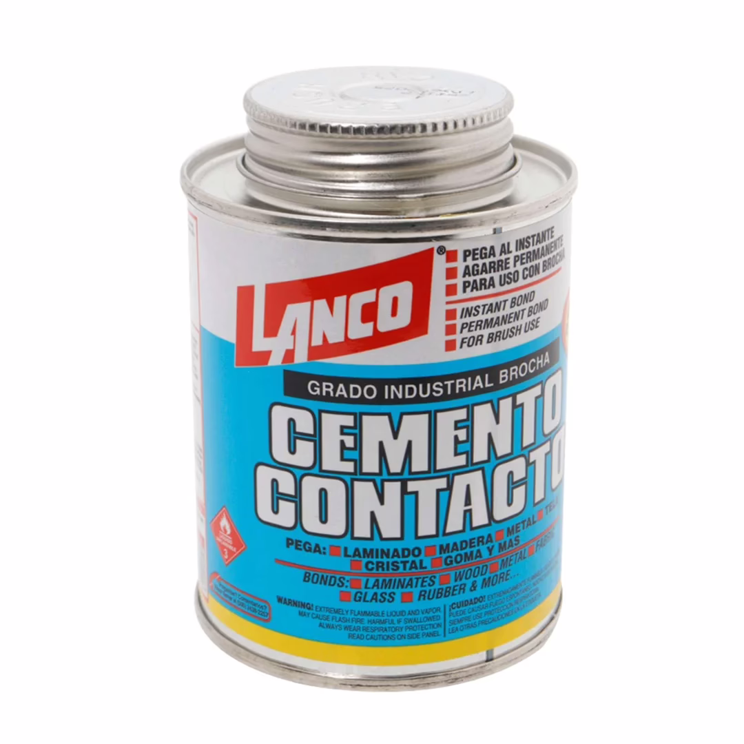 - Es un cemento de contacto (“contact cement”) de alta resistencia, formulado con goma de cloropreno (neopreno) en base solvente, diseñado para uniones permanentes de materiales porosos y no porosos.