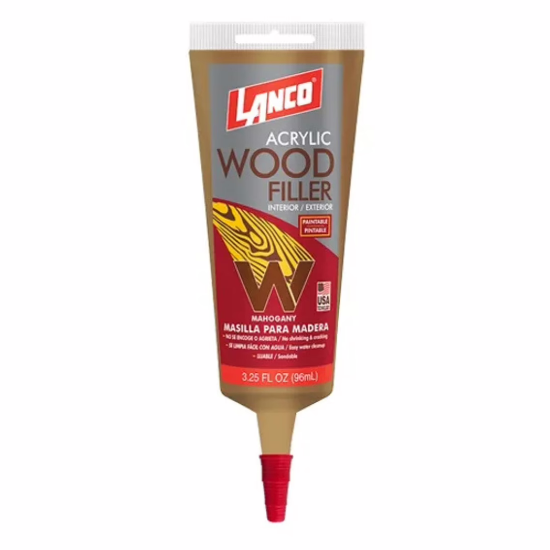 - Masilla acrílica para madera color caoba (mahogany) para reparar superficies de madera.