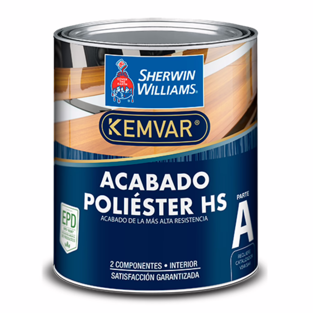 - Es un barniz poliéster catalizado (2 componentes) — diseñado para acabados duraderos en madera y mobiliario.