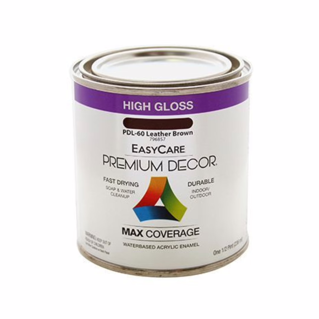- Esmalte decorativo de acabado brillante (gloss) en tono marrón (“brn”).