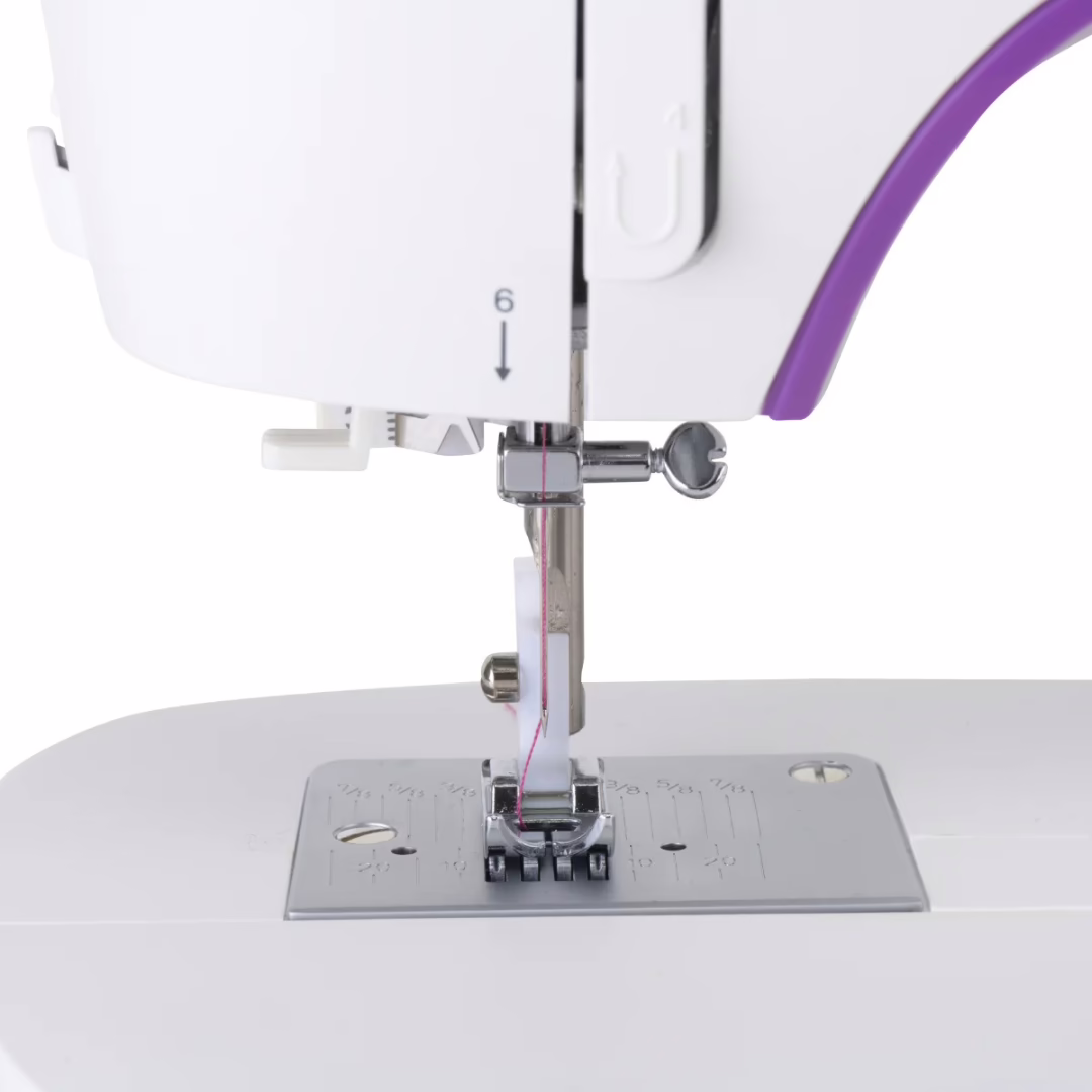 - Tiene 32 puntadas integradas (básicas, decorativas y elásticas) para múltiples proyectos de costura.