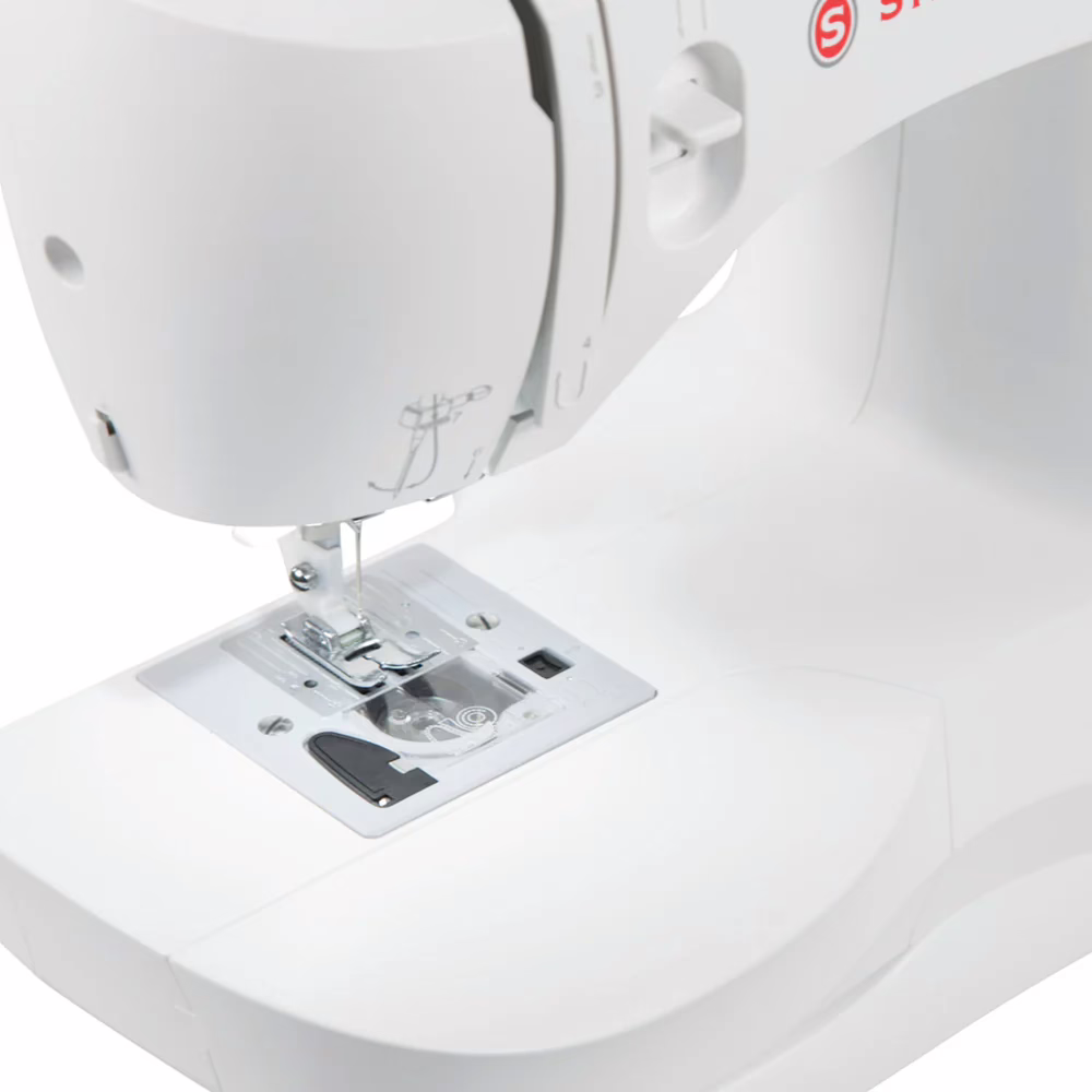 - Es una máquina de coser doméstica mecánica con control manual simple.