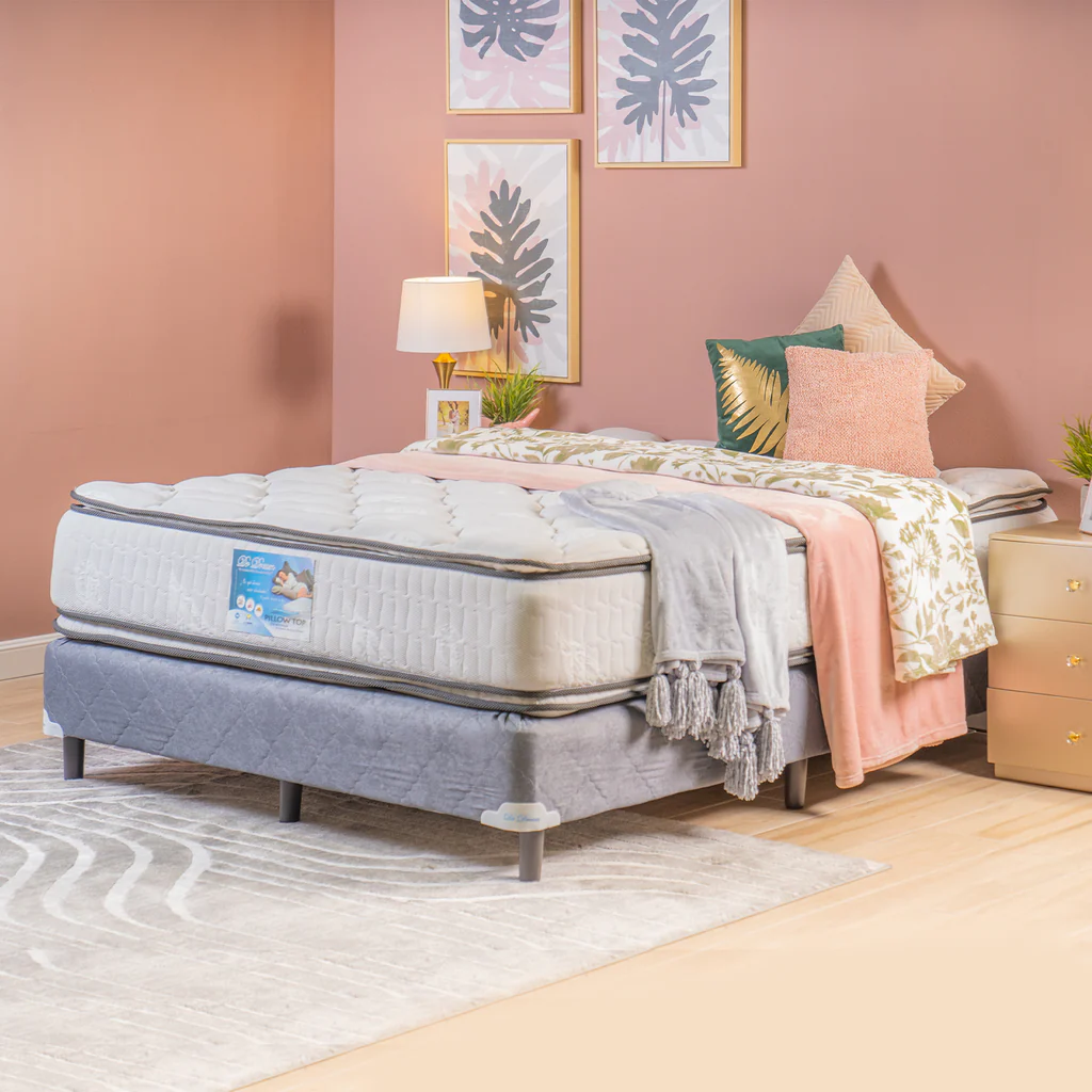 - Tela tejido de punto con tratamiento antiácaros, bacterias y hongos.